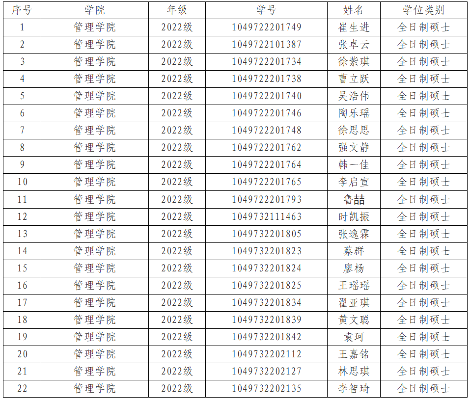 为了进一步选树典型、激励先进,营造优良校风学风,鼓励学生健康发展、全面成才,根据《武汉理工大学研究生评优评先管理办法》等有关文件精神,经个人申请、班级评议、年级审核,报学院优秀毕业生评选工作组审定,拟推荐崔生进等22人为2025届优秀毕业生候选人,结果公示如下: