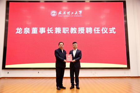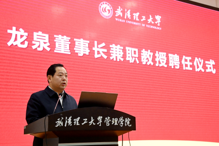 孟芳兵代表学校向龙泉校友再次回到母校、受聘学校兼职教授表示诚挚欢迎和热烈祝贺。他指出,龙泉校友作为传统金融互联网头部企业的掌门人,以卓越的领导力和创新精神,引领企业迈向高质量发展新境界,并始终关心教育事业,心系母校发展,以实际行动诠释饮水思源深情。他强调,龙泉校友加盟我校并被聘任为兼职教授,这不仅是学校深化产教融合进程中的一件大喜事,更是推动学校管理学科实现高质量发展的一项重大盛事。衷心希望龙泉校友以校为家,在学校事业发展中多给予有力支持,学校与中国平安财险的战略合作进一步向纵深推进、取得更扎实成效,在建设特色鲜明的世界一流大学征程上续写武汉理工大学高质量发展的精彩华章