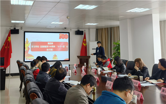 体育博彩平台排名 党委副书记杨伟波领学学校《迎接建党100周年“十个一百”行动方案》,并就《体育博彩平台排名 党委开展党史学习教育的实施方案》进行了工作部署。