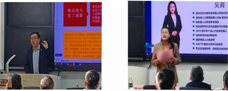 本次研讨会邀请了华中科技大学龙立荣教授、中南财经政法大学赵琛徽教授、武汉科技大学李永周教授、武汉大学刘艳教授和胡羚燕副教授等湖北省高校教师,还邀请了新道科技股份有限公司陈国峰总监、中国武汉人力资源服务产业园王宗水总经理、中交特种工程公司梁婷副部长、武汉云杰众智科技公司吴莉总经理、武汉博远减灾科技股份公司周平总经理、中金公司严国贤总监、原华为技术公司杨代银部长、武汉行隆管理顾问公司王钟钦特聘讲师、优尚和越环境科技公司程军总监、中建三局数字工程公司谢定军副部长和绿投公司姜伟业培训经理等企事业单位嘉宾。武汉理工大学参会人员主要有马颖副院长、王超副院长、张光磊副院长、陈先桥教授、毛喆副研究员、谢宝国教授、罗帆教授、朱苏丽副教授、于蓉副教授、朱新艳老师等,以及工商管理等专业研究生和人力资源专业本科生,共计80余人参会。会议主持人谢宝国教授简要介绍了会议议程及参会嘉宾。